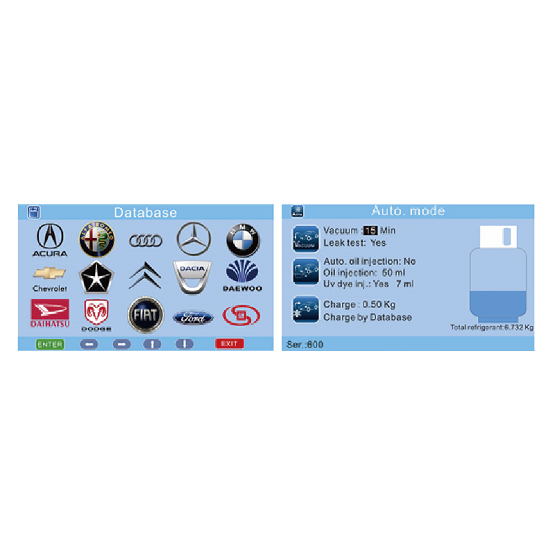 DaTo AC recycling intelligent machine recovers, recycle, discharges used oil, refill new oil along with vacuuming the pipe line and recharge the A/C gas in the vehicles. It also has the automatic function to carry on the AC recycling process without the human monitoring with inbuilt vehicle database from 1995 to till date.